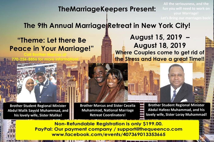 This year the 9th Annual Marriage Retreat will take place in New York City! Save the Date! August 15, 2019 - August 18, 2019. This year we are going to have so much fun in New York city as we learn about how to take care of one another and have peace in our homes. The Hotel where this is all happening at is the Hampton Inn Brooklyn|DowntownExt Brooklyn, NY 11201.